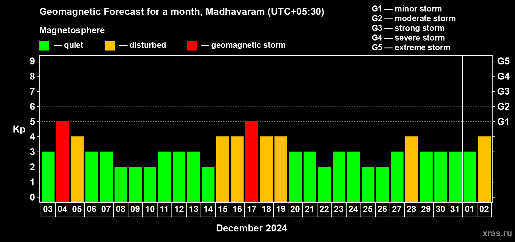 Geomagnetic storm forecast in Madhavaram for Dec 03, 2023