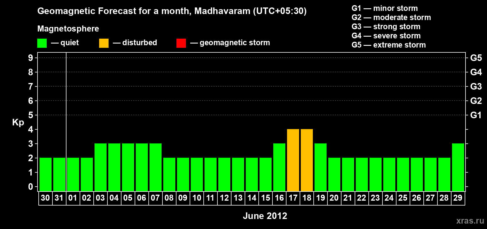 Geomagnetic storm forecast in Madhavaram for May 30, 2012