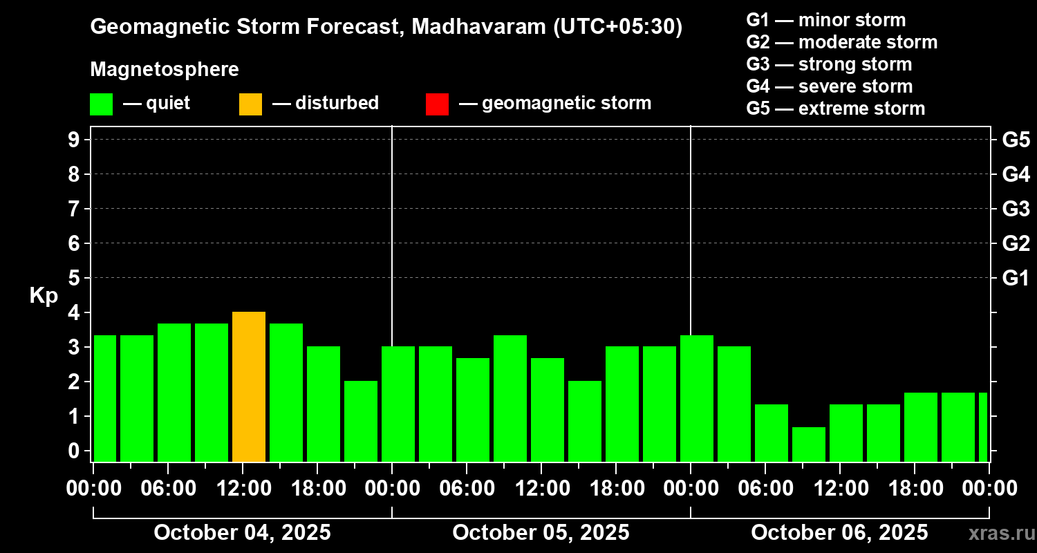 Geomagnetic storm forecast in Madhavaram for Oct 04, 2025