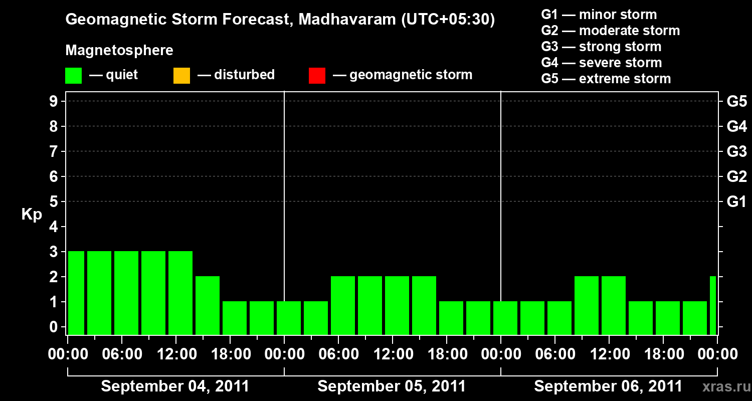 Geomagnetic storm forecast in Madhavaram for Sep 04, 2011