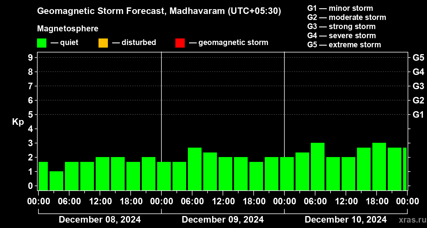 Geomagnetic storm forecast in Madhavaram for Dec 08, 2024