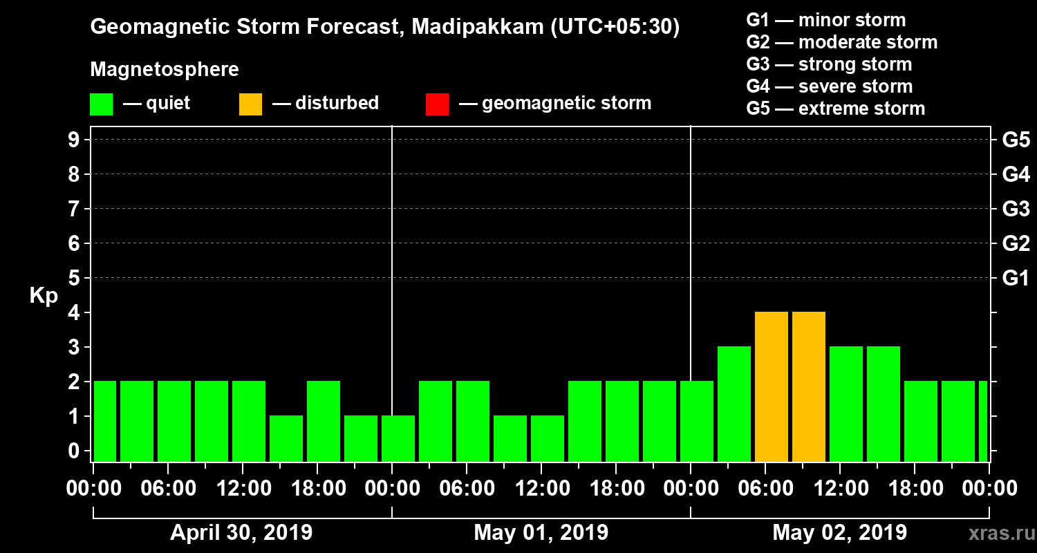 Geomagnetic storm forecast in Madipakkam for Apr 30, 2019