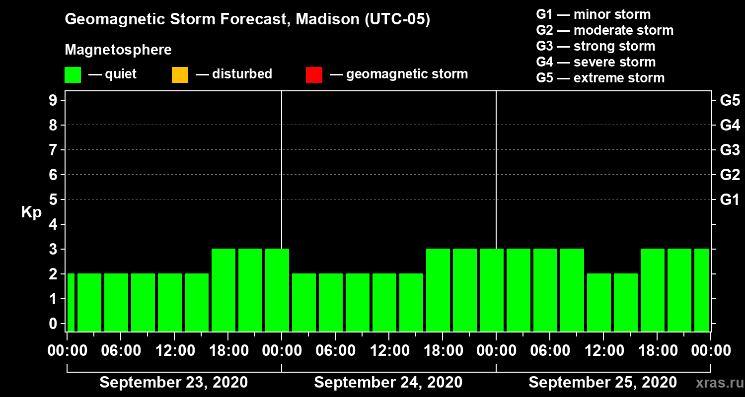 Geomagnetic storm forecast in Madison for Sep 23, 2020