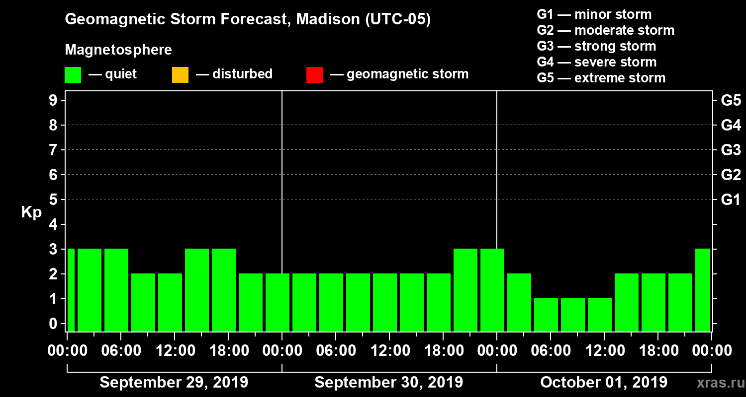 Geomagnetic activity forecast in Madison — Sep 29, 2019