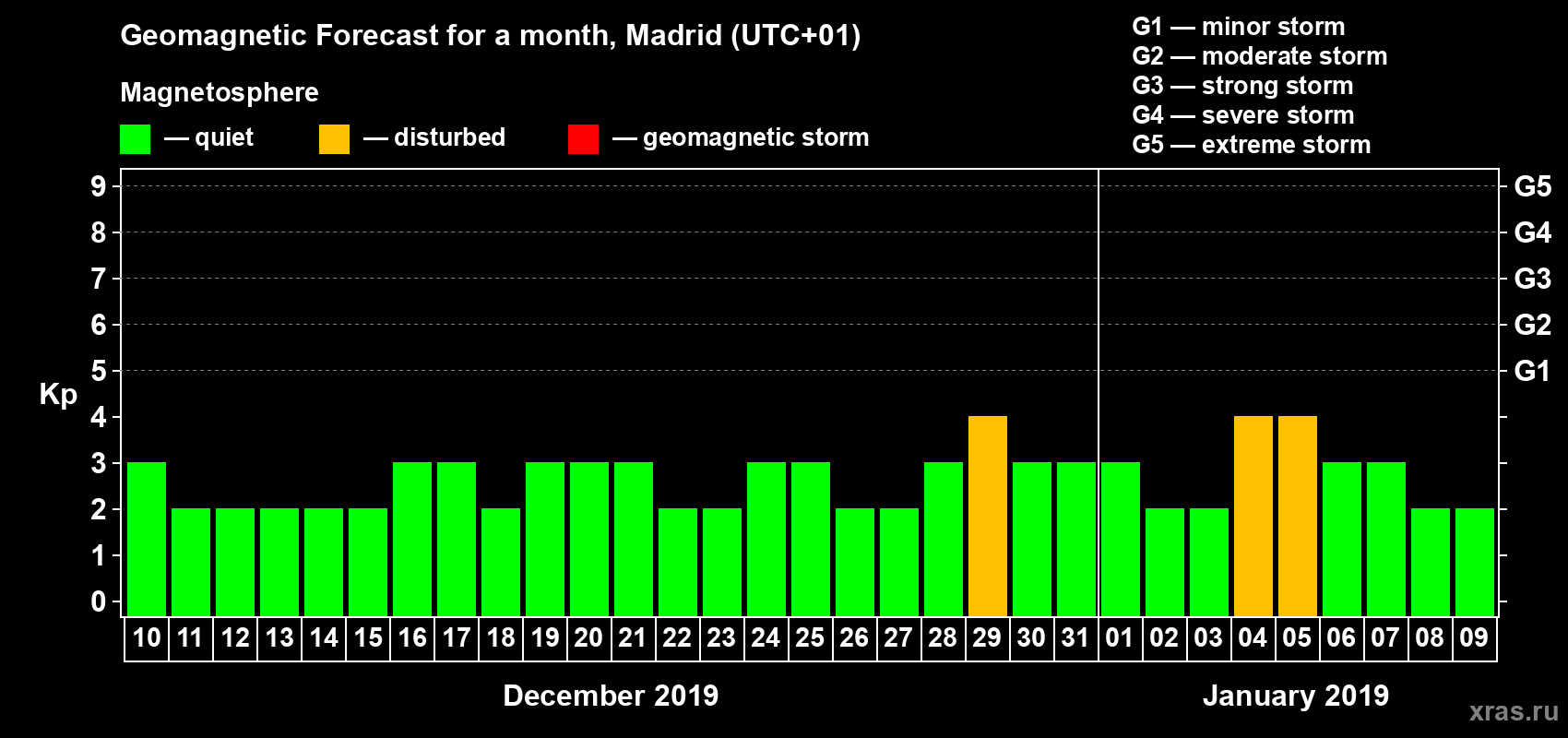 Geomagnetic storm forecast in Madrid for Dec 10, 2018