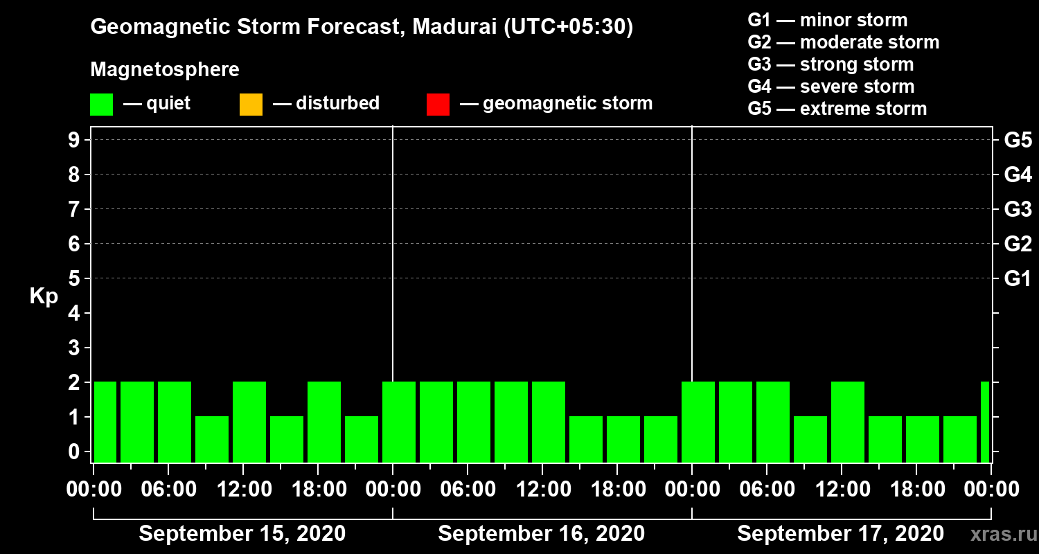 Geomagnetic activity forecast in Madurai — Sep 15, 2020