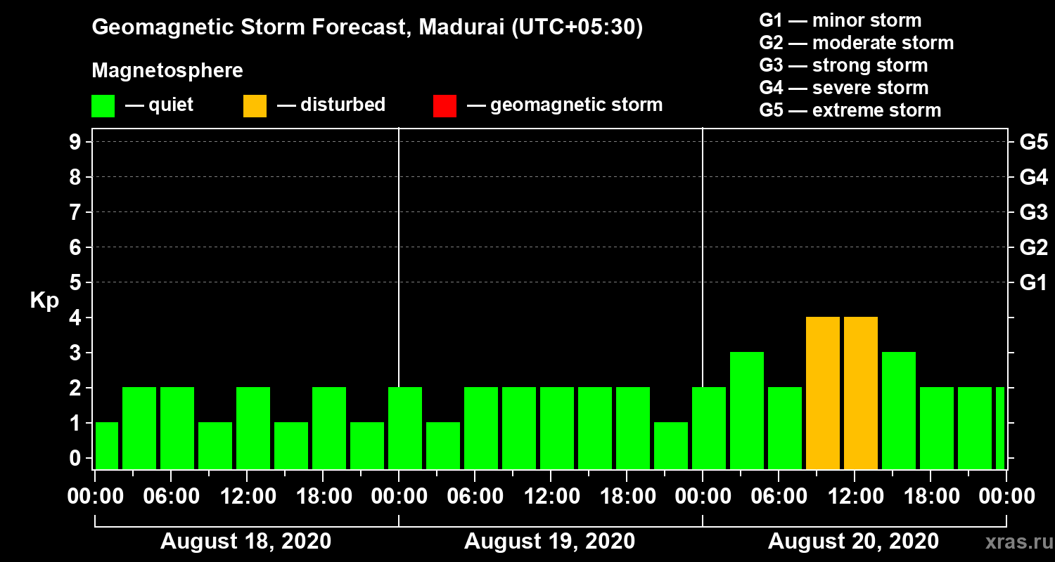 Geomagnetic activity forecast in Madurai — Aug 18, 2020