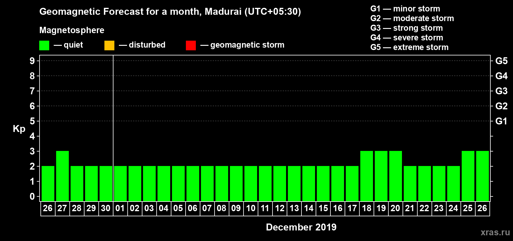 Geomagnetic storm forecast in Madurai for Nov 26, 2019