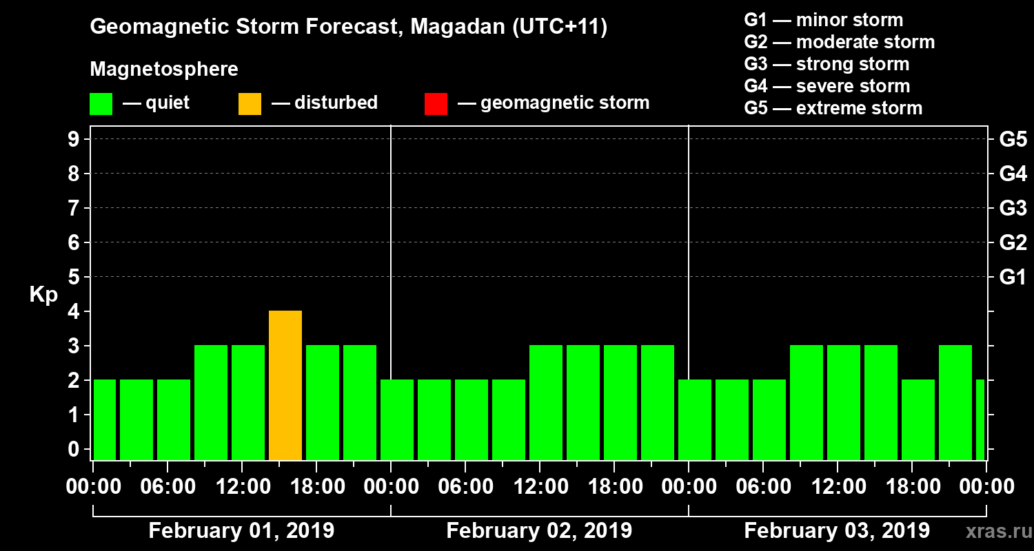 Geomagnetic storm forecast in Magadan for Feb 01, 2019