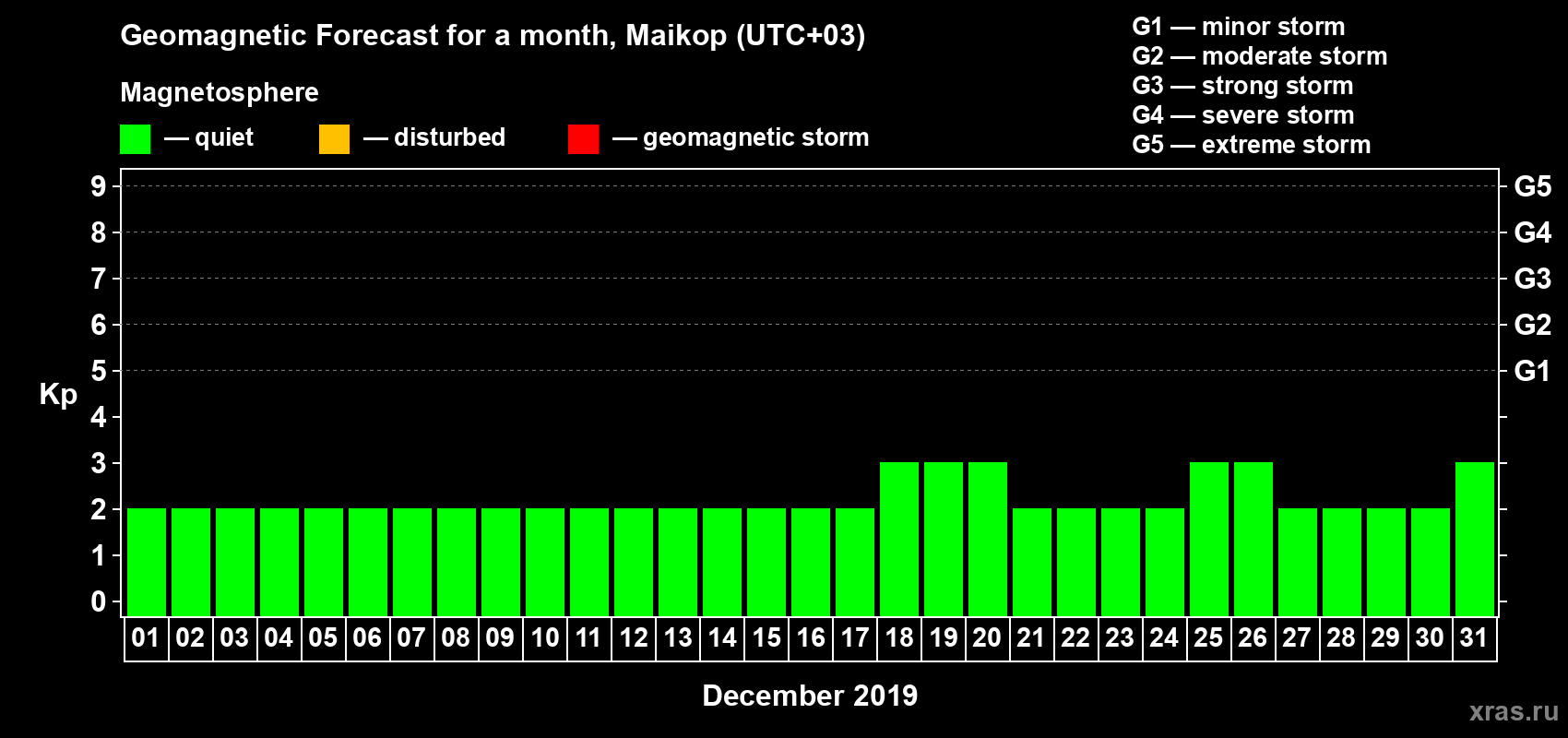 Geomagnetic activity forecast in Maikop — Dec 01, 2019