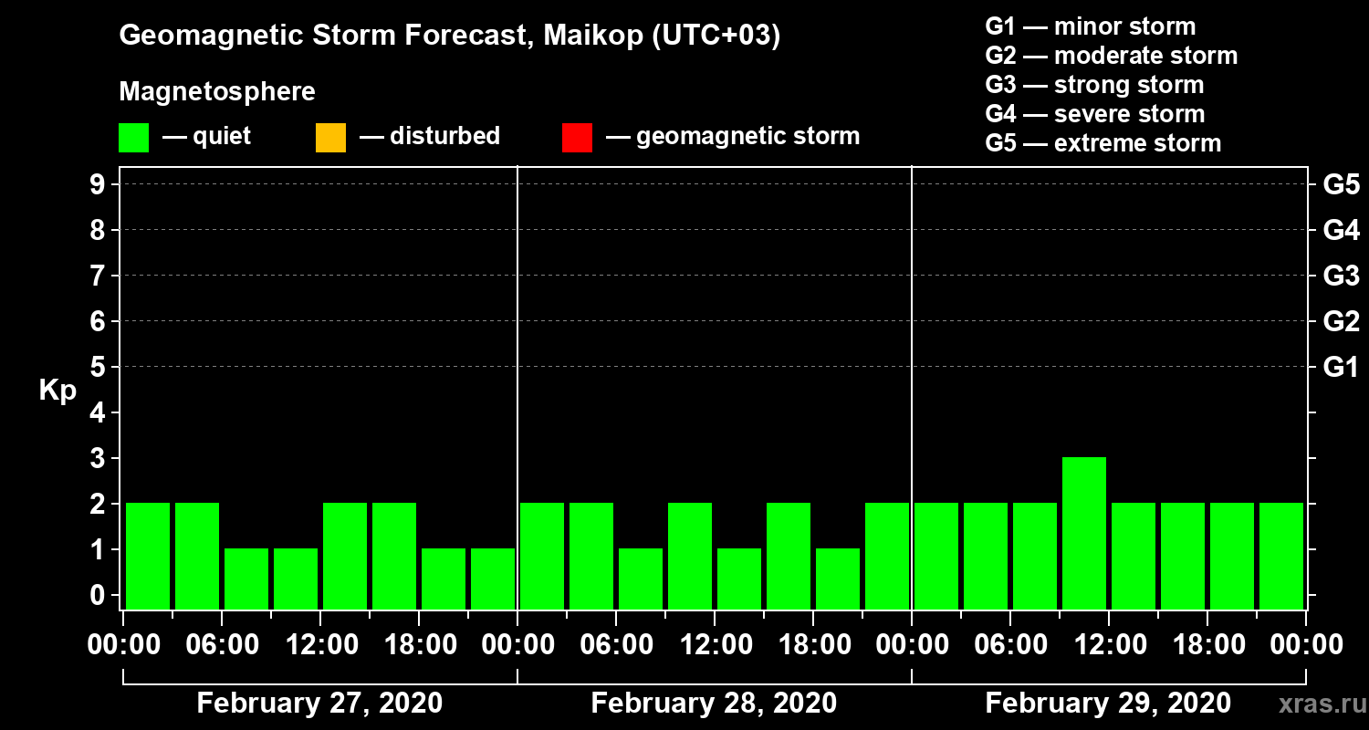 Geomagnetic storm forecast in Maikop for Feb 27, 2020