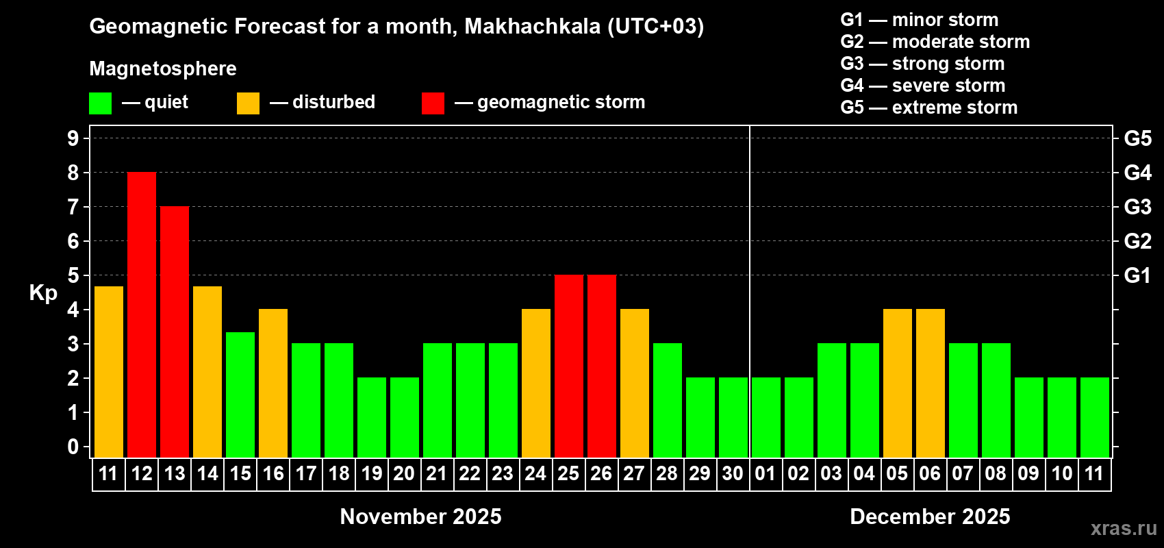 Geomagnetic storm forecast in Makhachkala for Nov 11, 2025