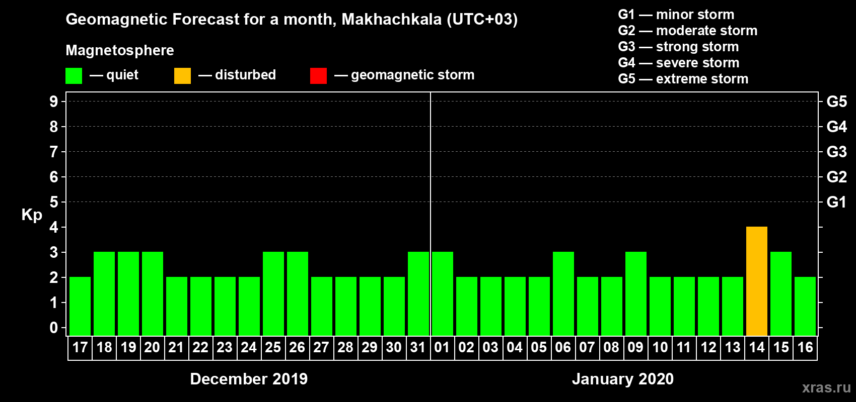 Geomagnetic storm forecast in Makhachkala for Dec 17, 2019
