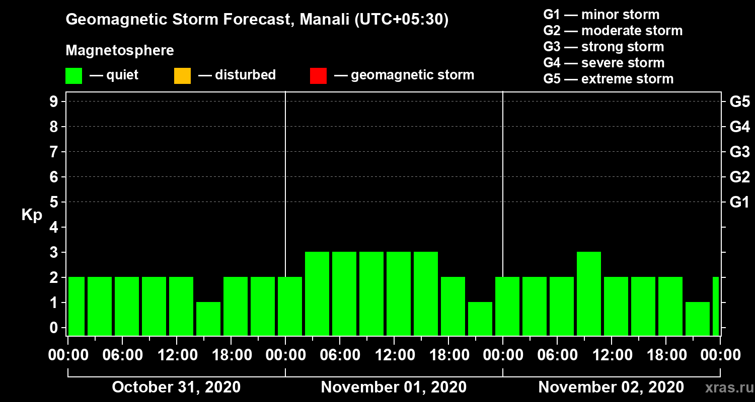 Geomagnetic activity forecast in Manali — Oct 31, 2020