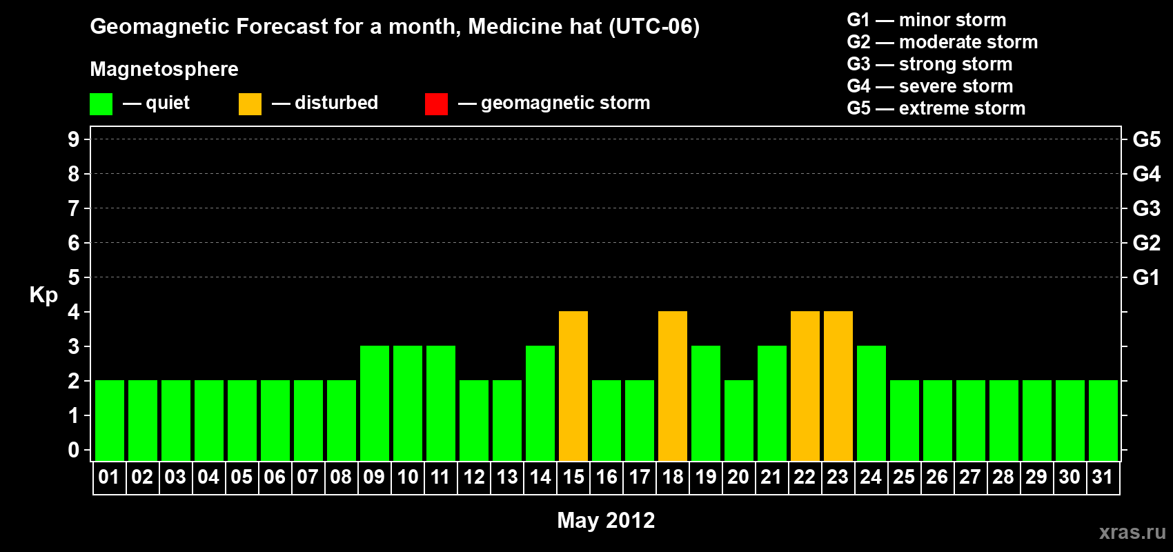 Geomagnetic storm forecast in Medicine hat for May 01, 2012