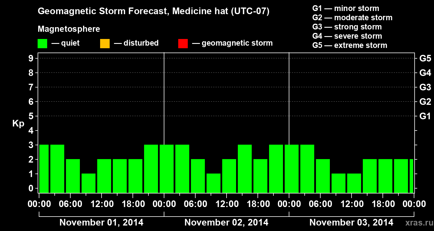 Geomagnetic storm forecast in Medicine hat for Nov 01, 2014