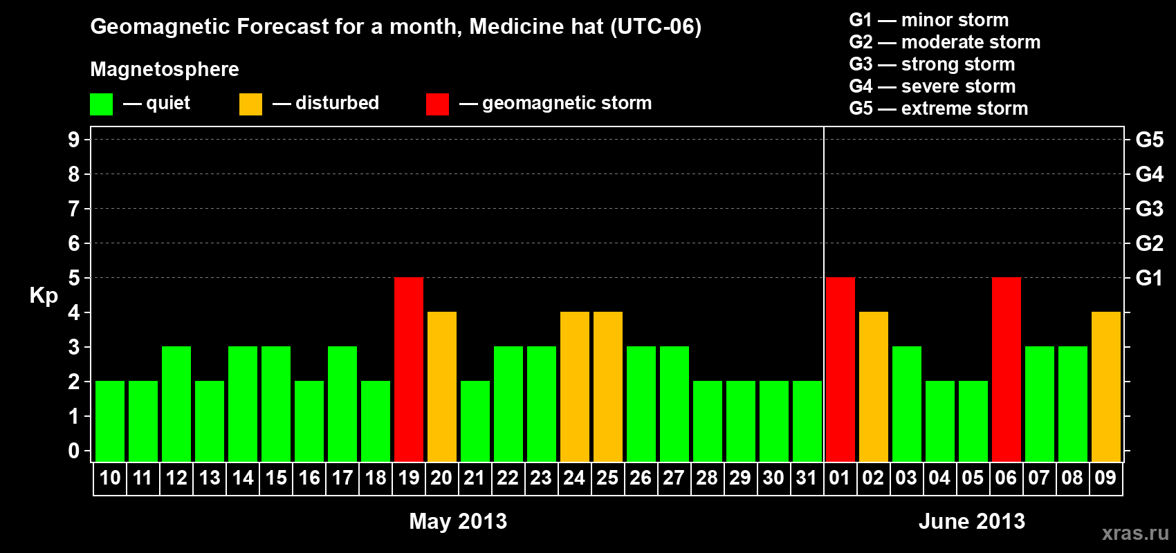 Geomagnetic storm forecast in Medicine hat for May 10, 2013