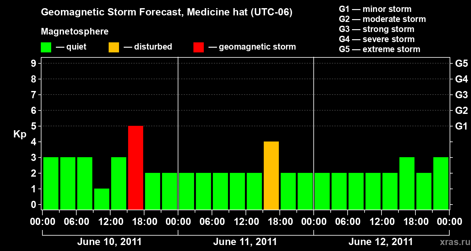 Geomagnetic storm forecast in Medicine hat for Jun 10, 2011