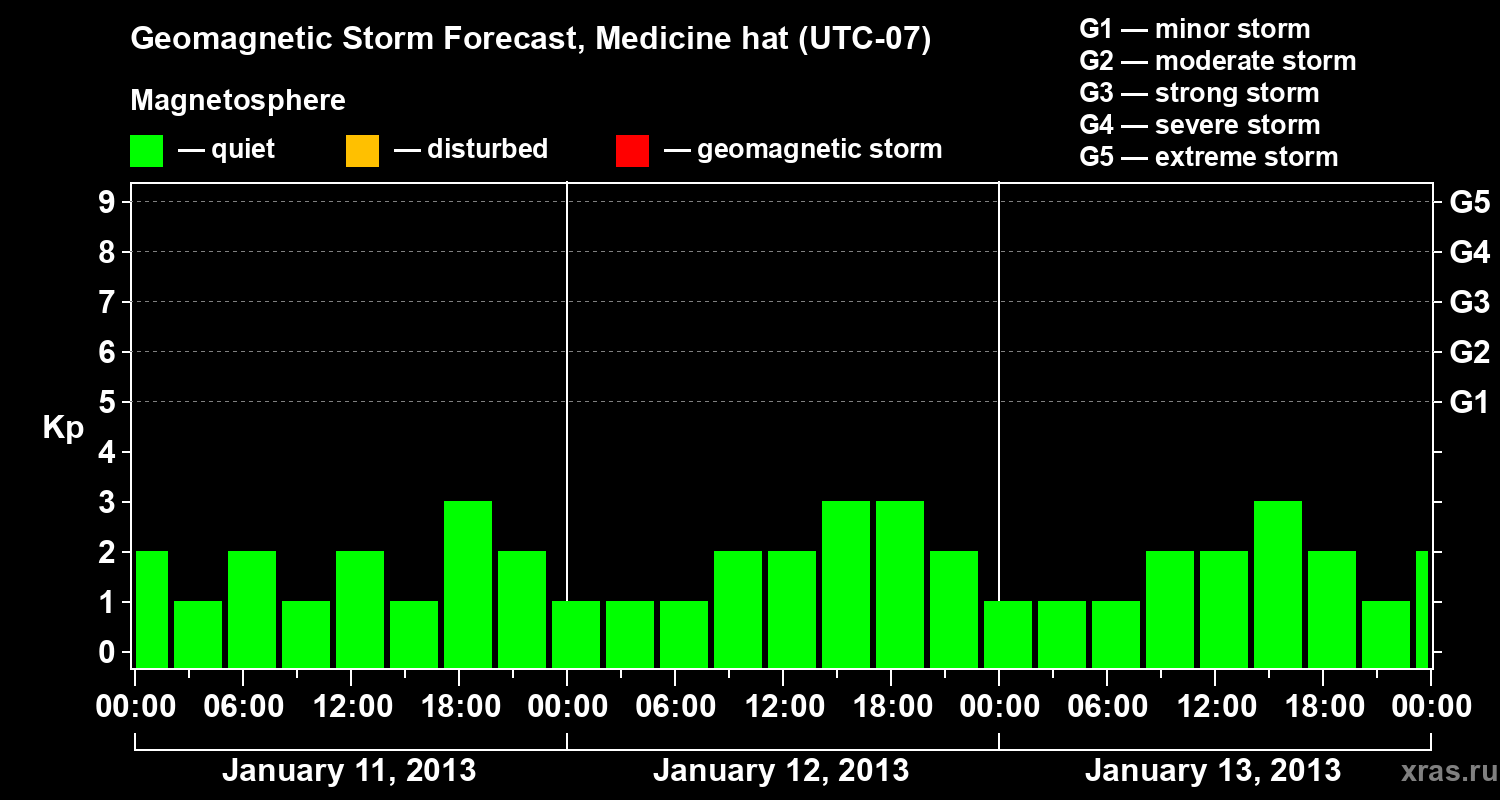 Geomagnetic storm forecast in Medicine hat for Jan 11, 2013