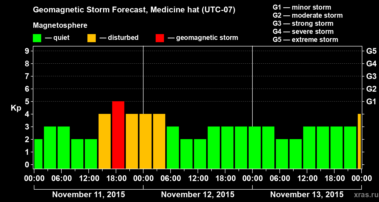 Geomagnetic storm forecast in Medicine hat for Nov 11, 2015