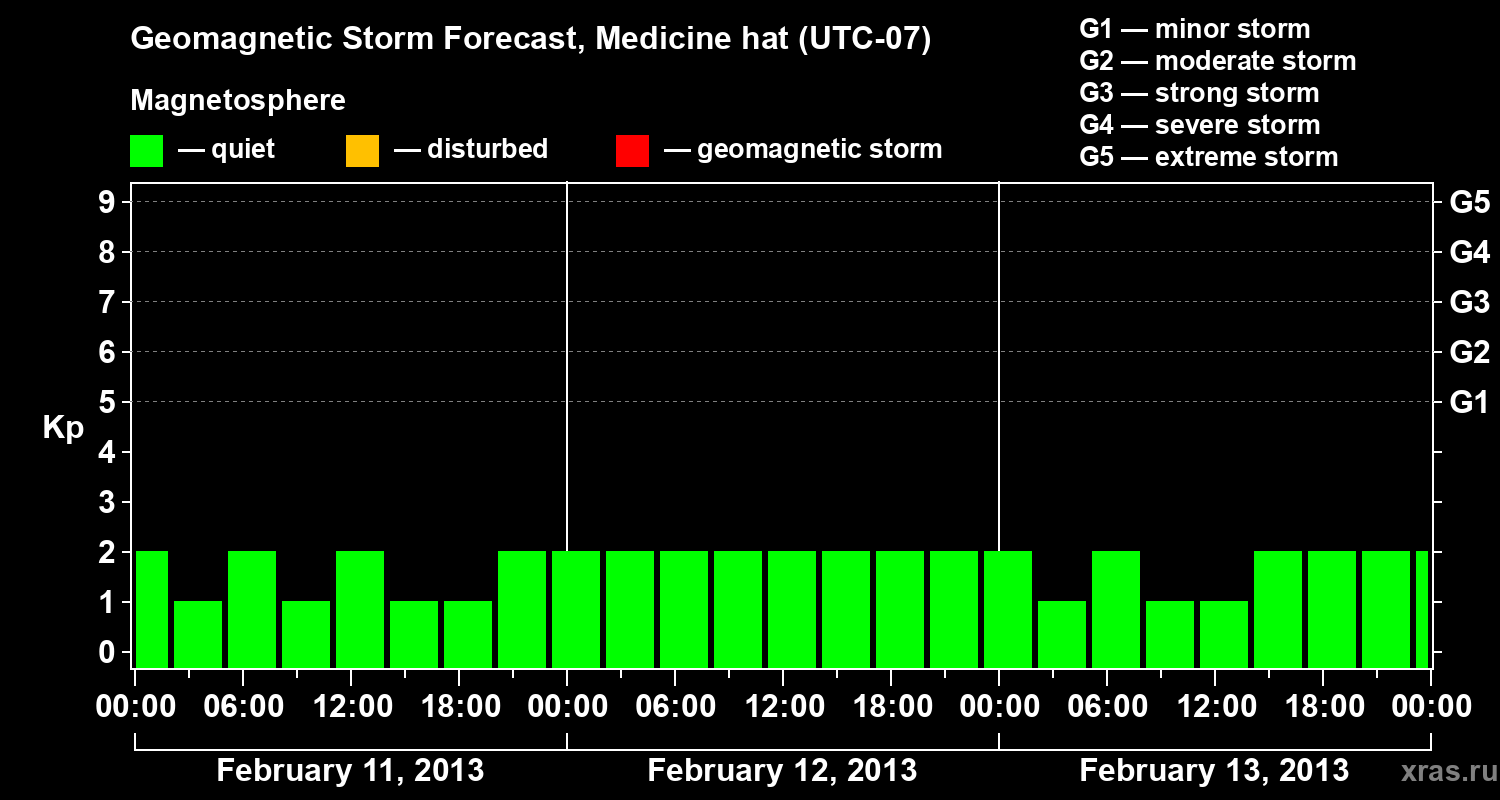 Geomagnetic storm forecast in Medicine hat for Feb 11, 2013