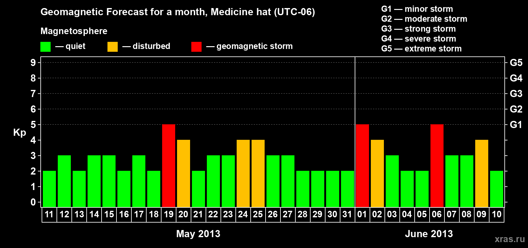 Geomagnetic storm forecast in Medicine hat for May 11, 2013