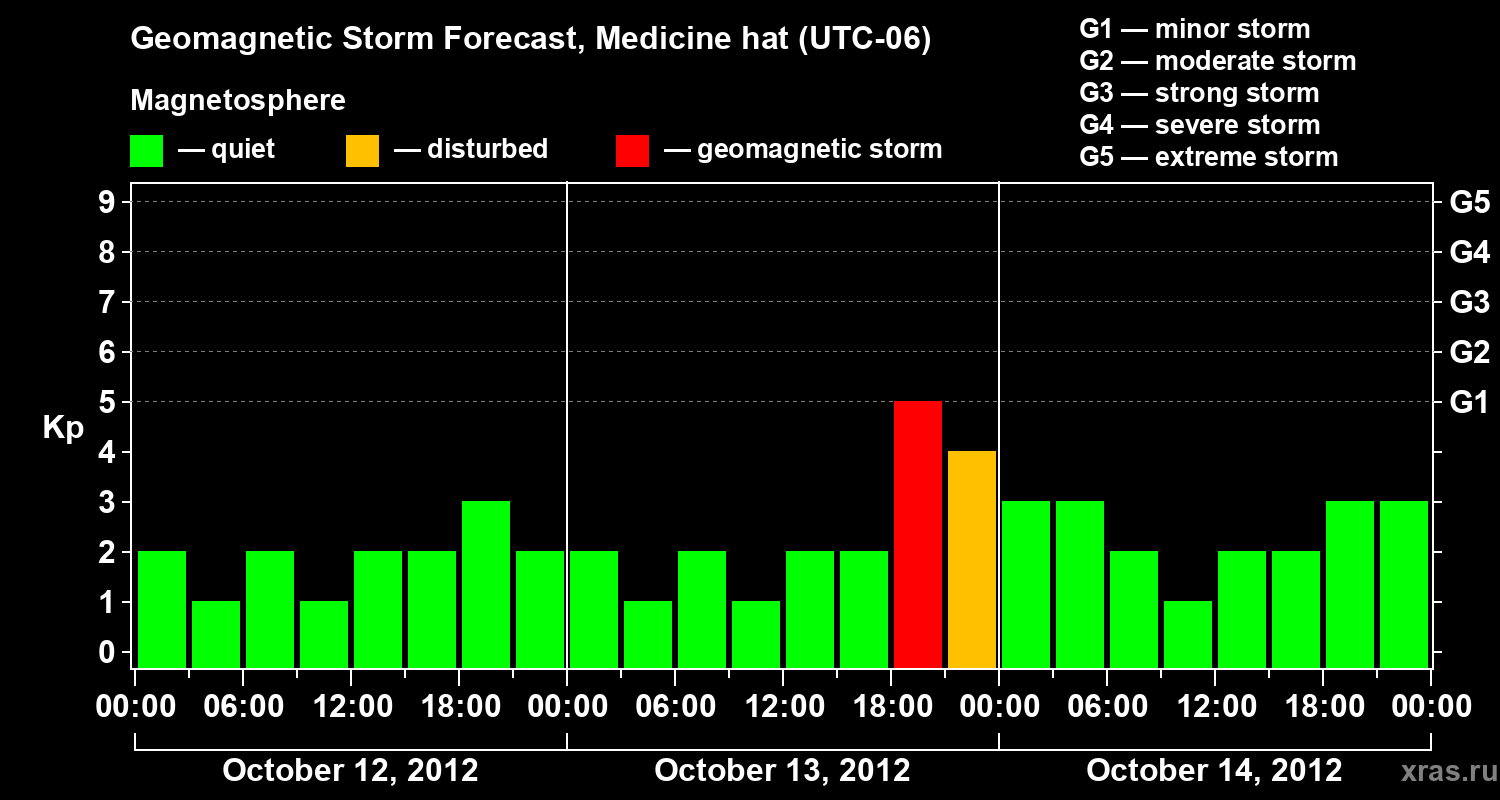 Geomagnetic storm forecast in Medicine hat for Oct 12, 2012