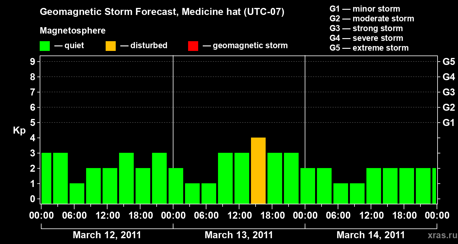 Geomagnetic storm forecast in Medicine hat for Mar 12, 2011