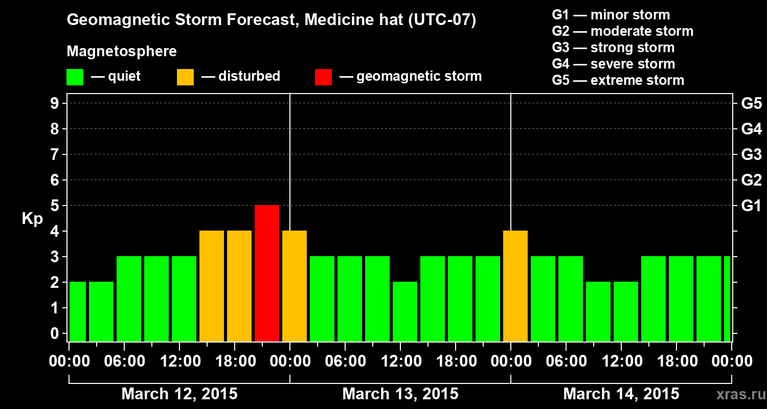 Geomagnetic storm forecast in Medicine hat for Mar 12, 2015