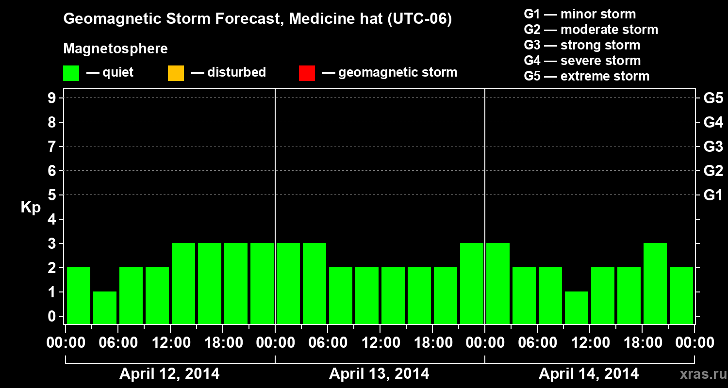 Geomagnetic storm forecast in Medicine hat for Apr 12, 2014