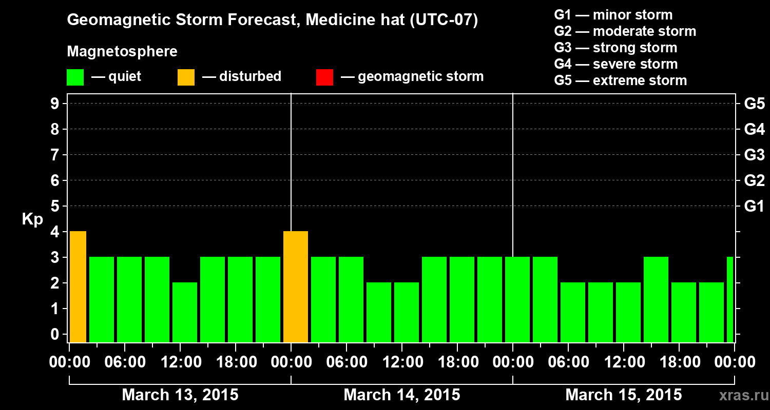 Geomagnetic storm forecast in Medicine hat for Mar 13, 2015