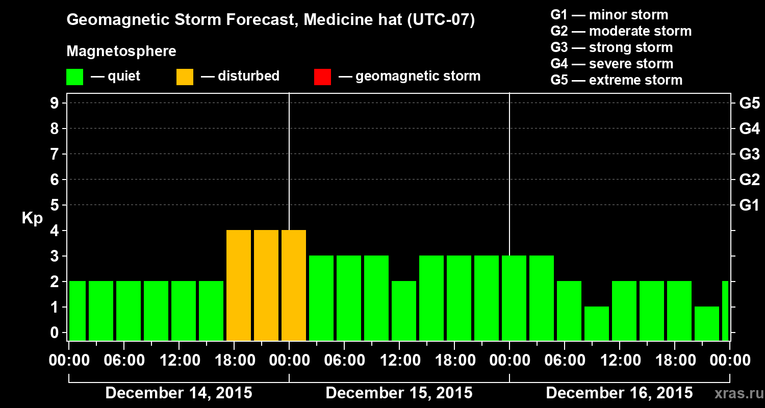 Geomagnetic storm forecast in Medicine hat for Dec 14, 2015