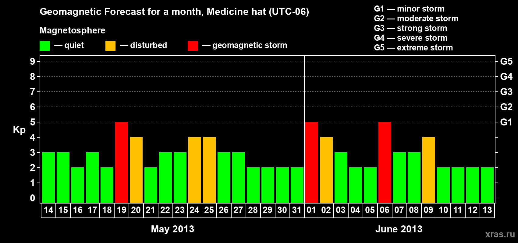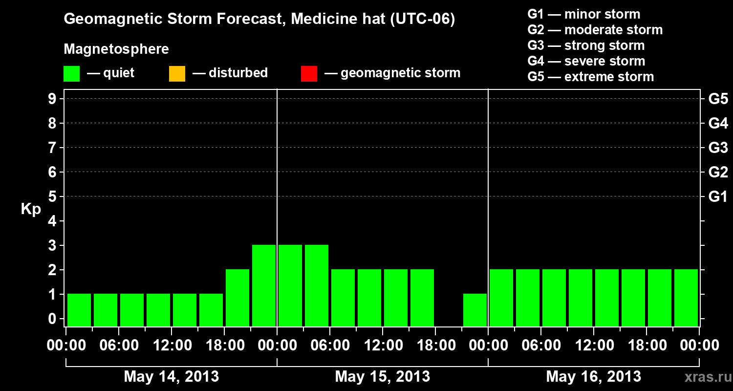 Geomagnetic storm forecast in Medicine hat for May 14, 2013