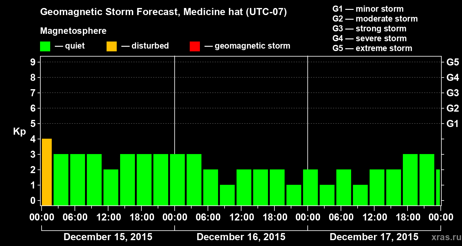 Geomagnetic storm forecast in Medicine hat for Dec 15, 2015