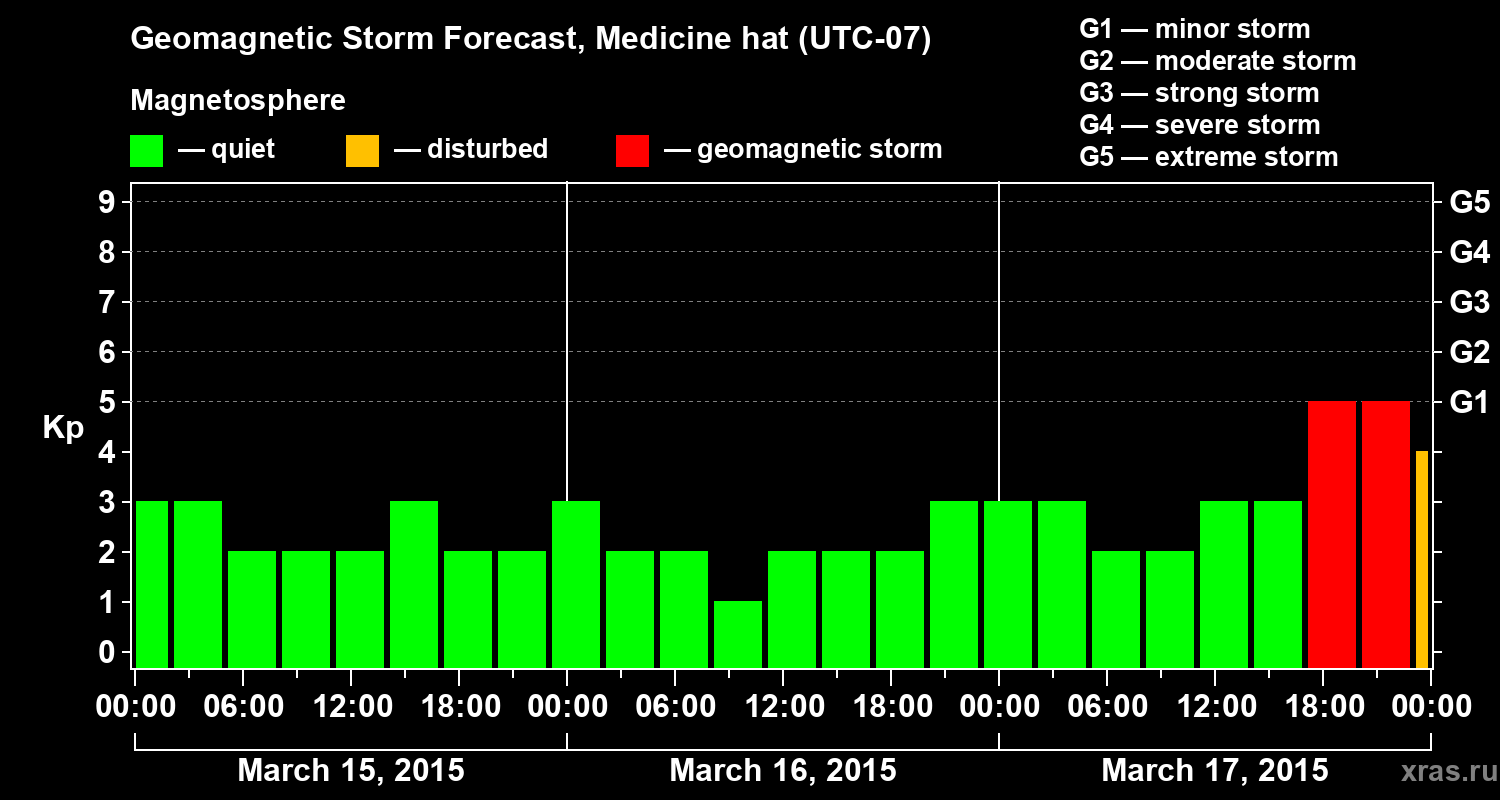 Geomagnetic storm forecast in Medicine hat for Mar 15, 2015