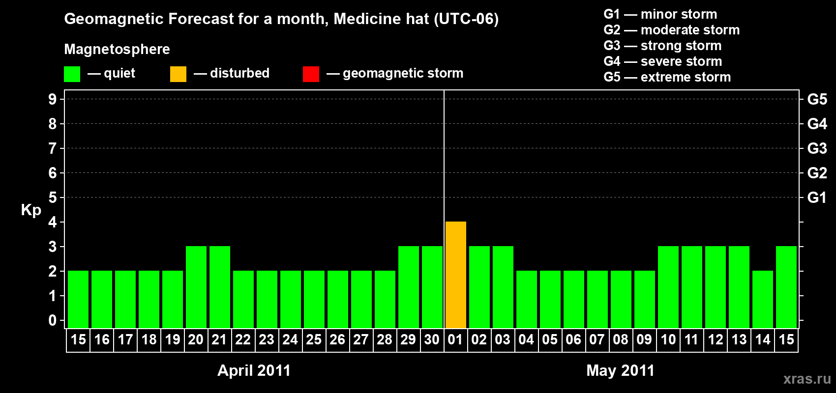 Geomagnetic storm forecast in Medicine hat for Apr 15, 2011