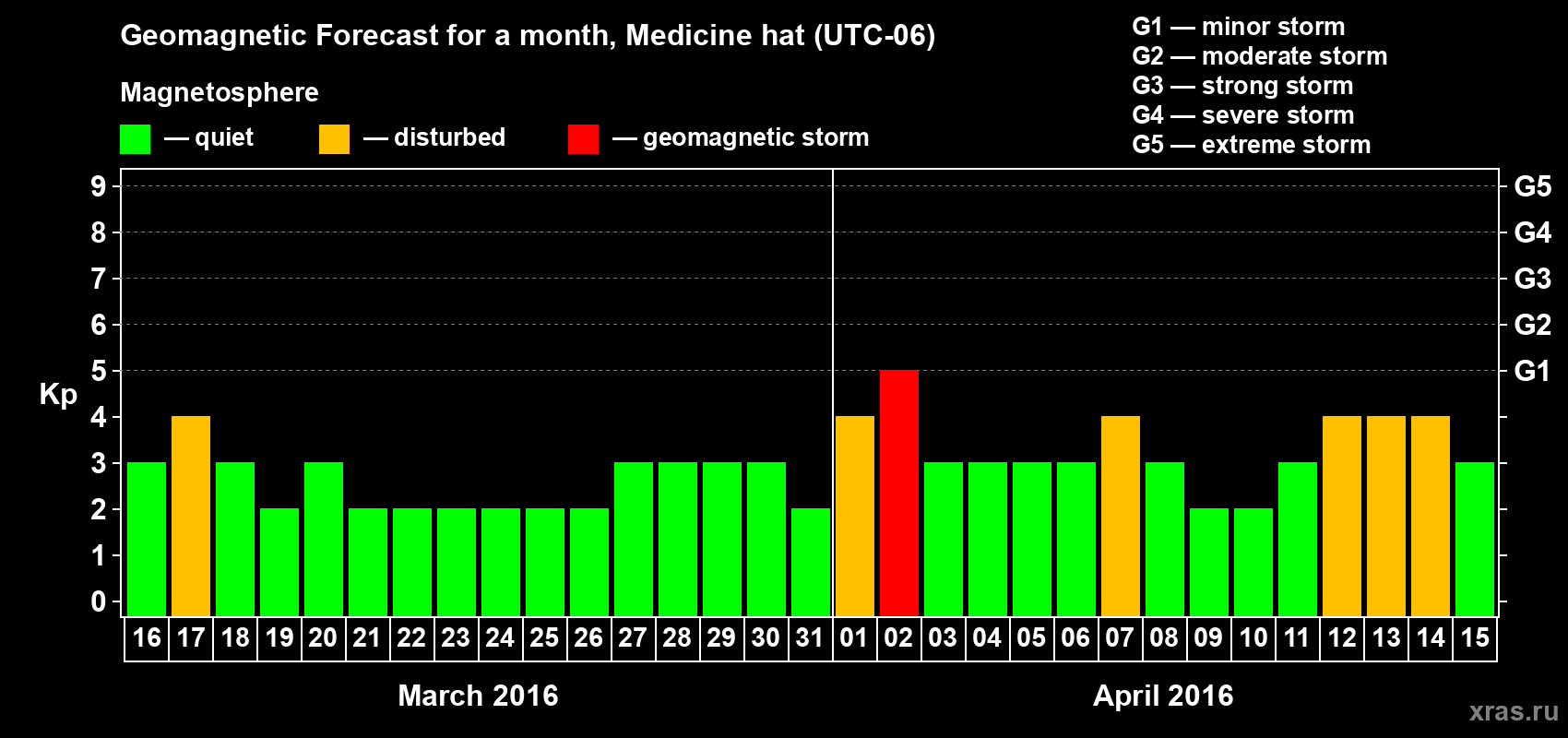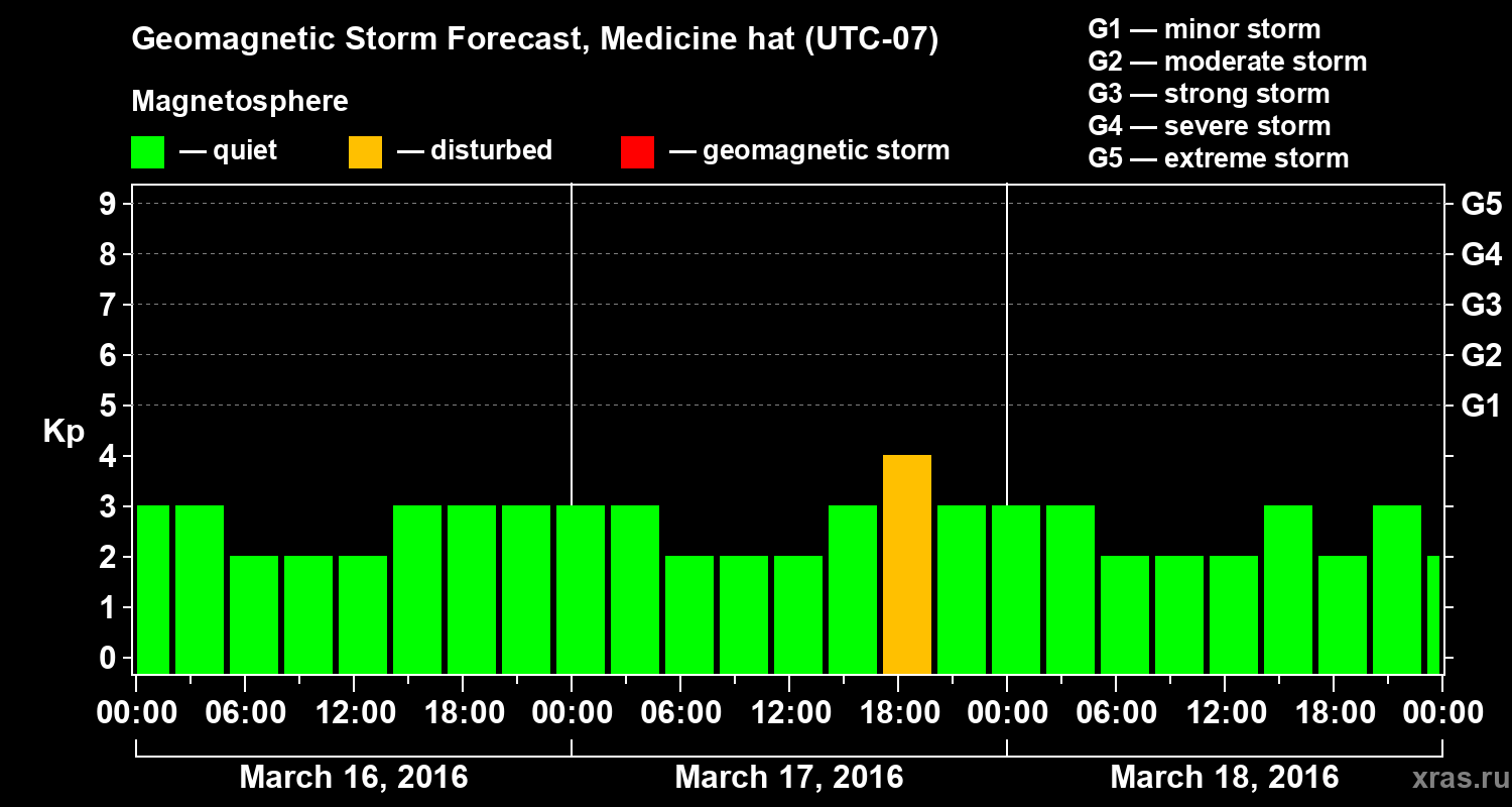 Geomagnetic storm forecast in Medicine hat for Mar 16, 2016