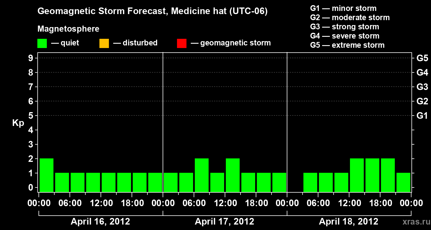 Geomagnetic storm forecast in Medicine hat for Apr 16, 2012
