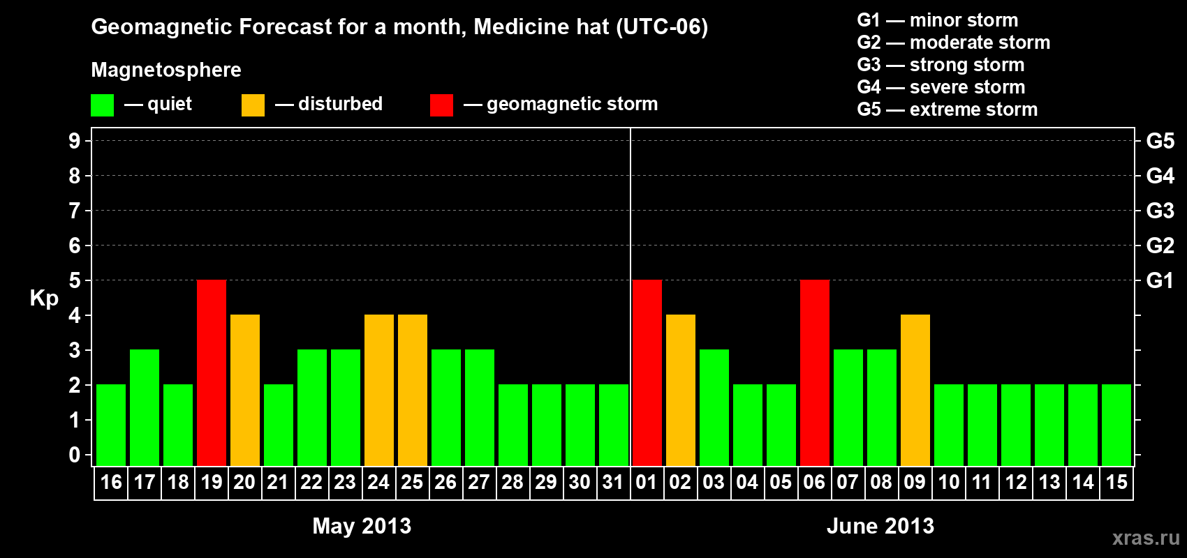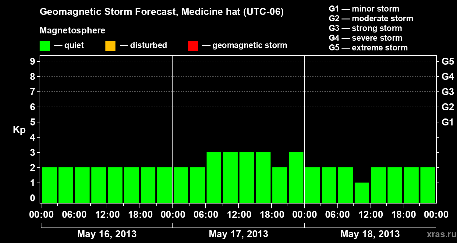 Geomagnetic storm forecast in Medicine hat for May 16, 2013
