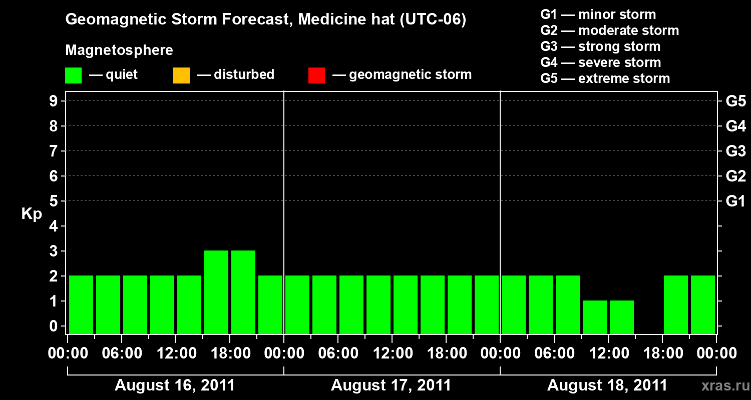 Geomagnetic storm forecast in Medicine hat for Aug 16, 2011