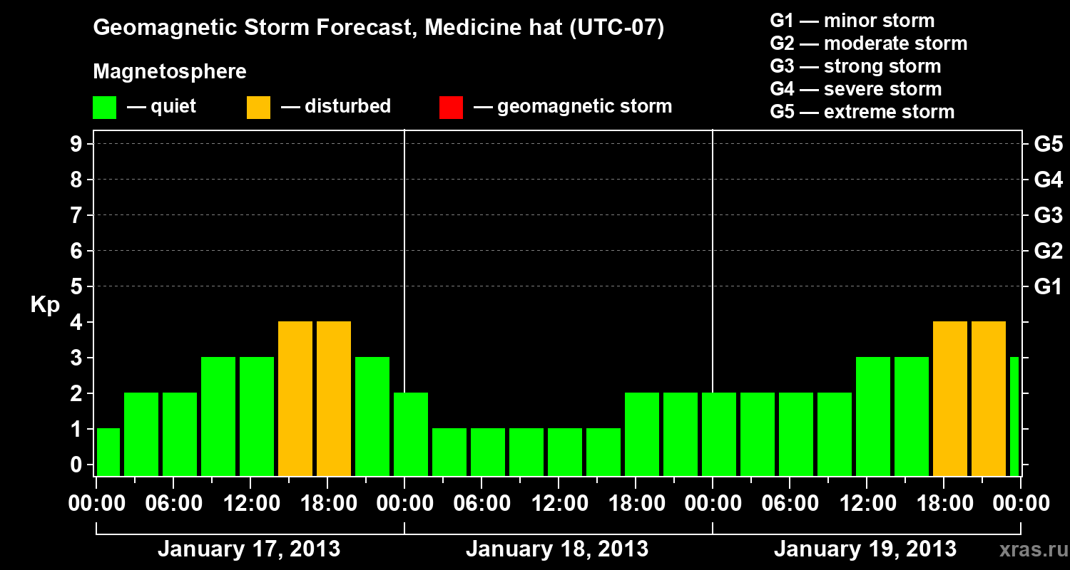 Geomagnetic storm forecast in Medicine hat for Jan 17, 2013