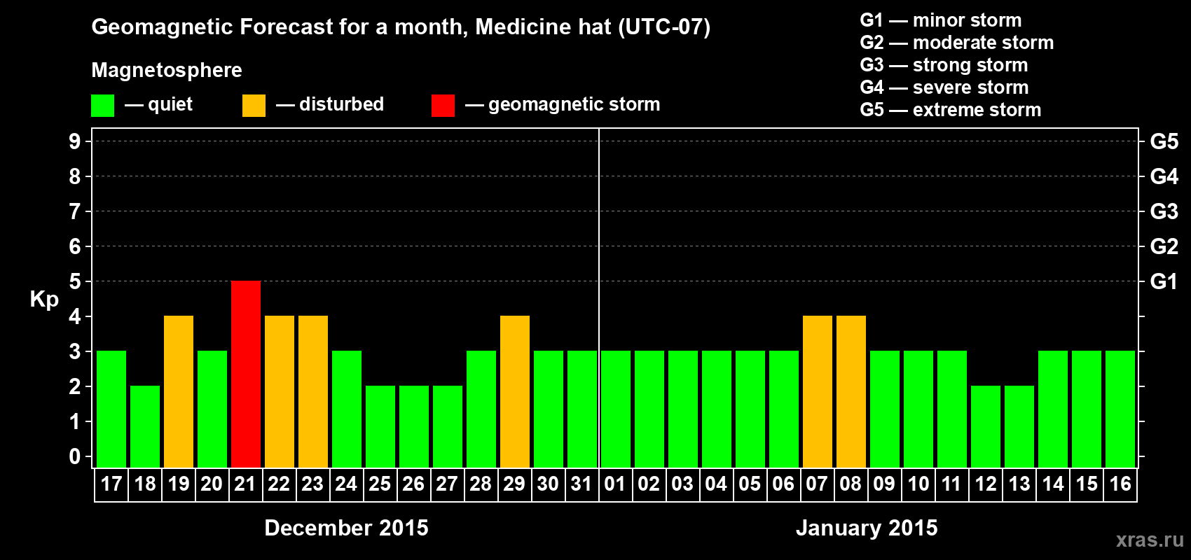 Geomagnetic storm forecast in Medicine hat for Dec 17, 2014