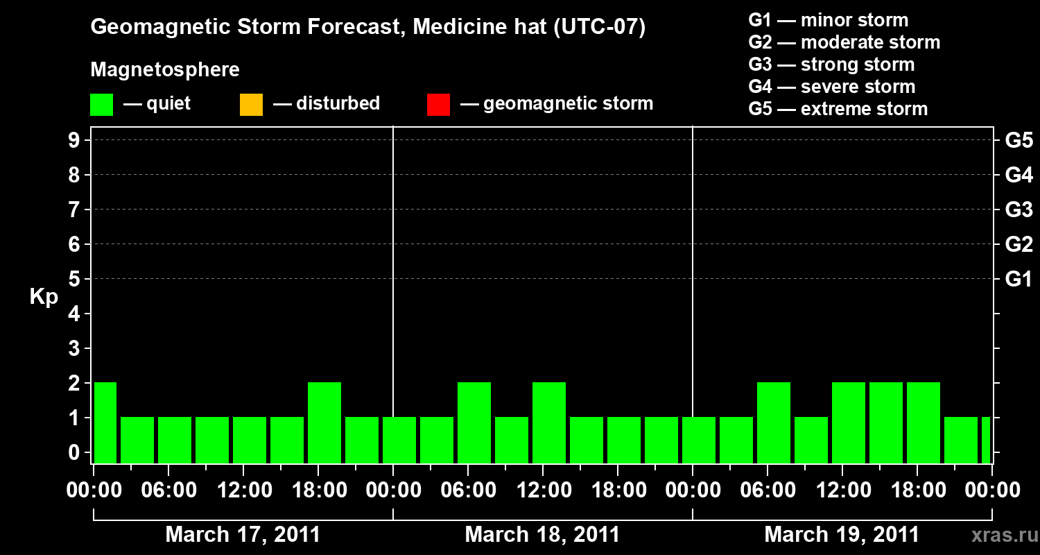 Geomagnetic storm forecast in Medicine hat for Mar 17, 2011