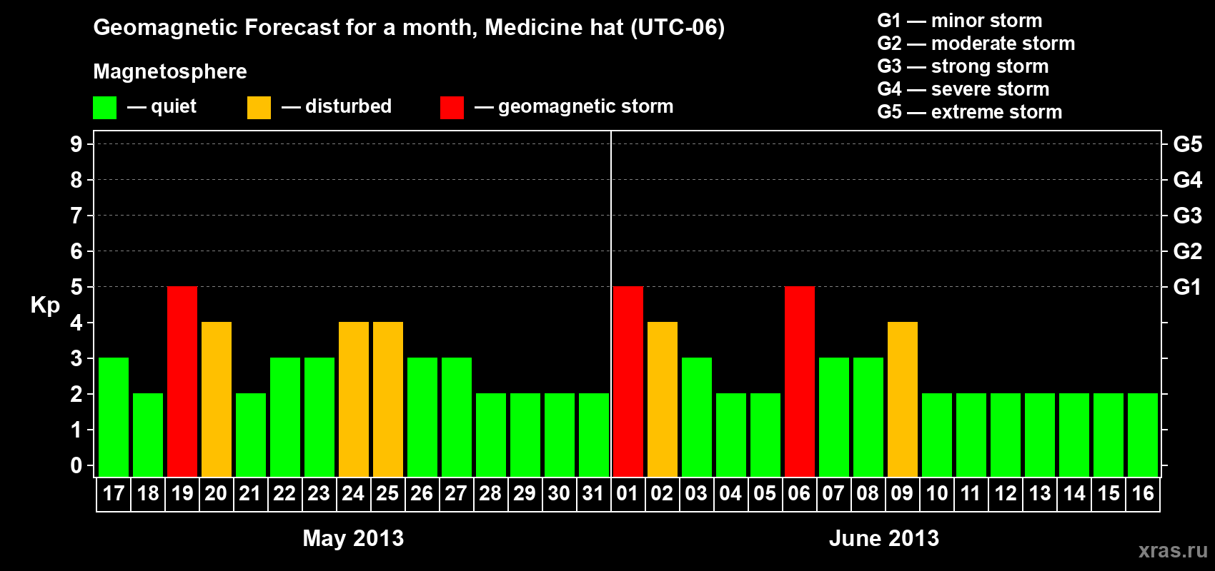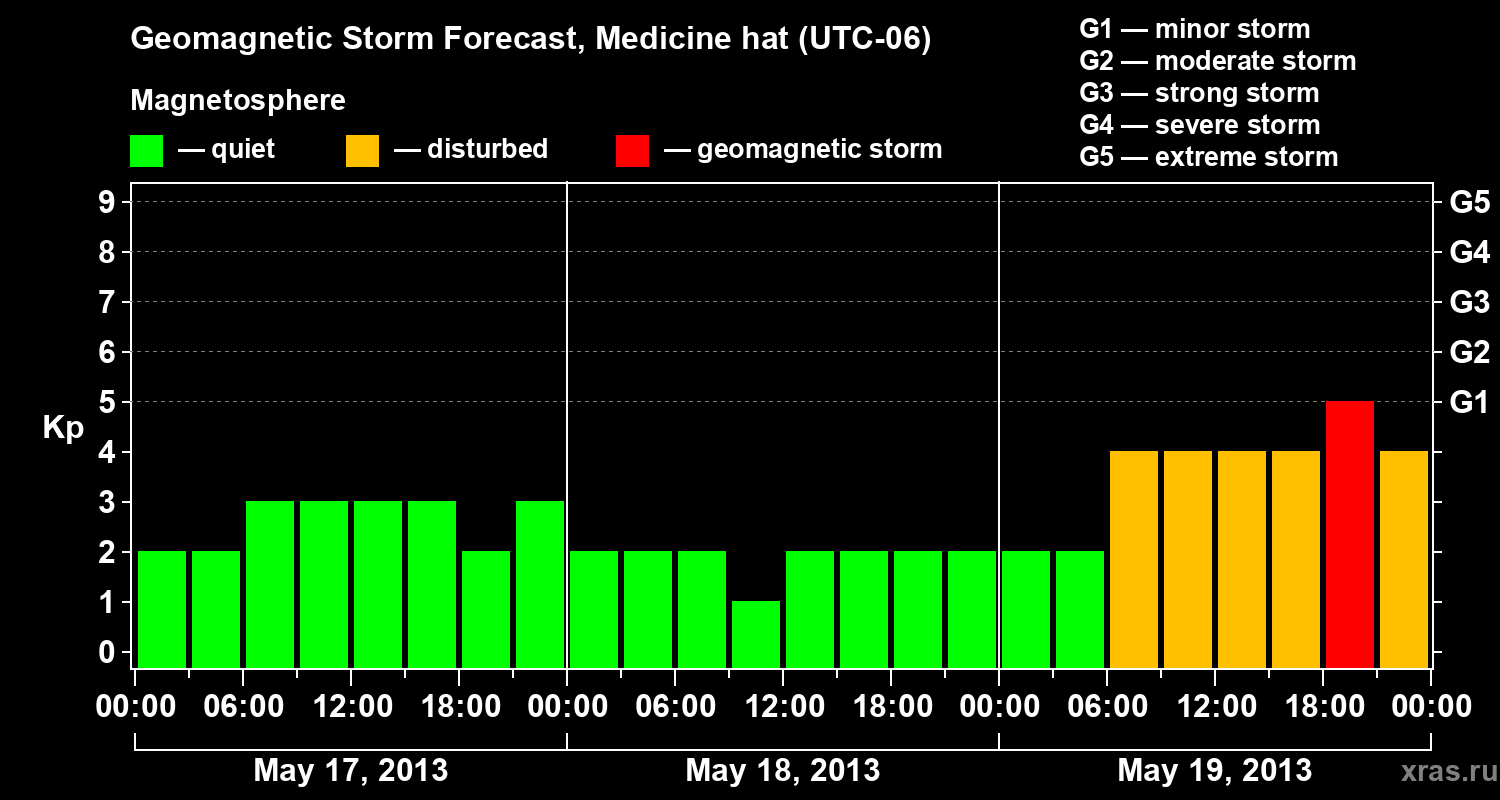 Geomagnetic storm forecast in Medicine hat for May 17, 2013