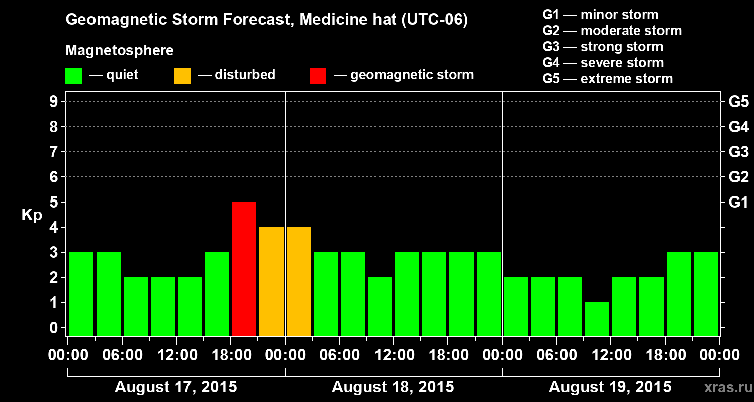 Geomagnetic storm forecast in Medicine hat for Aug 17, 2015