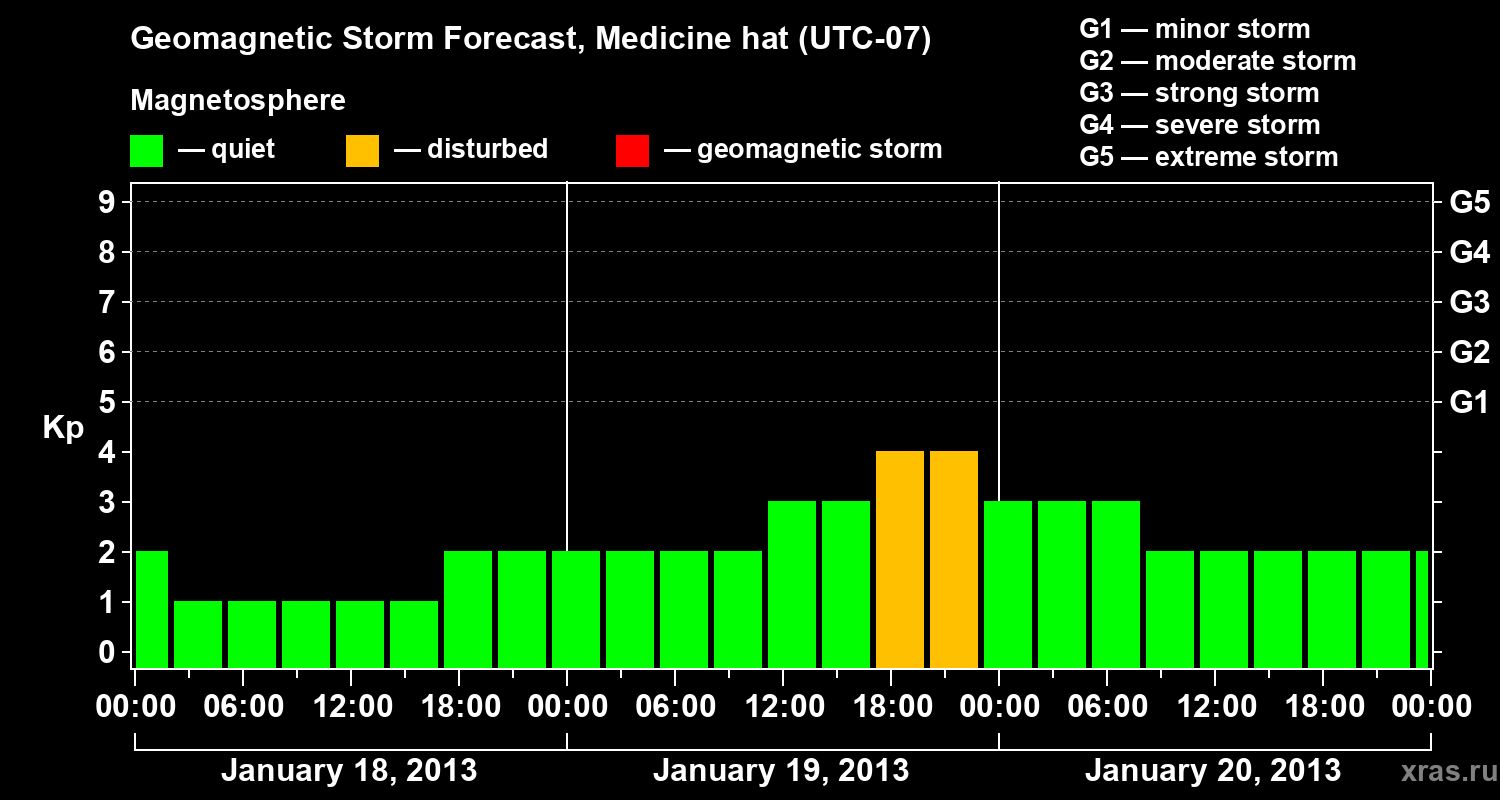 Geomagnetic storm forecast in Medicine hat for Jan 18, 2013