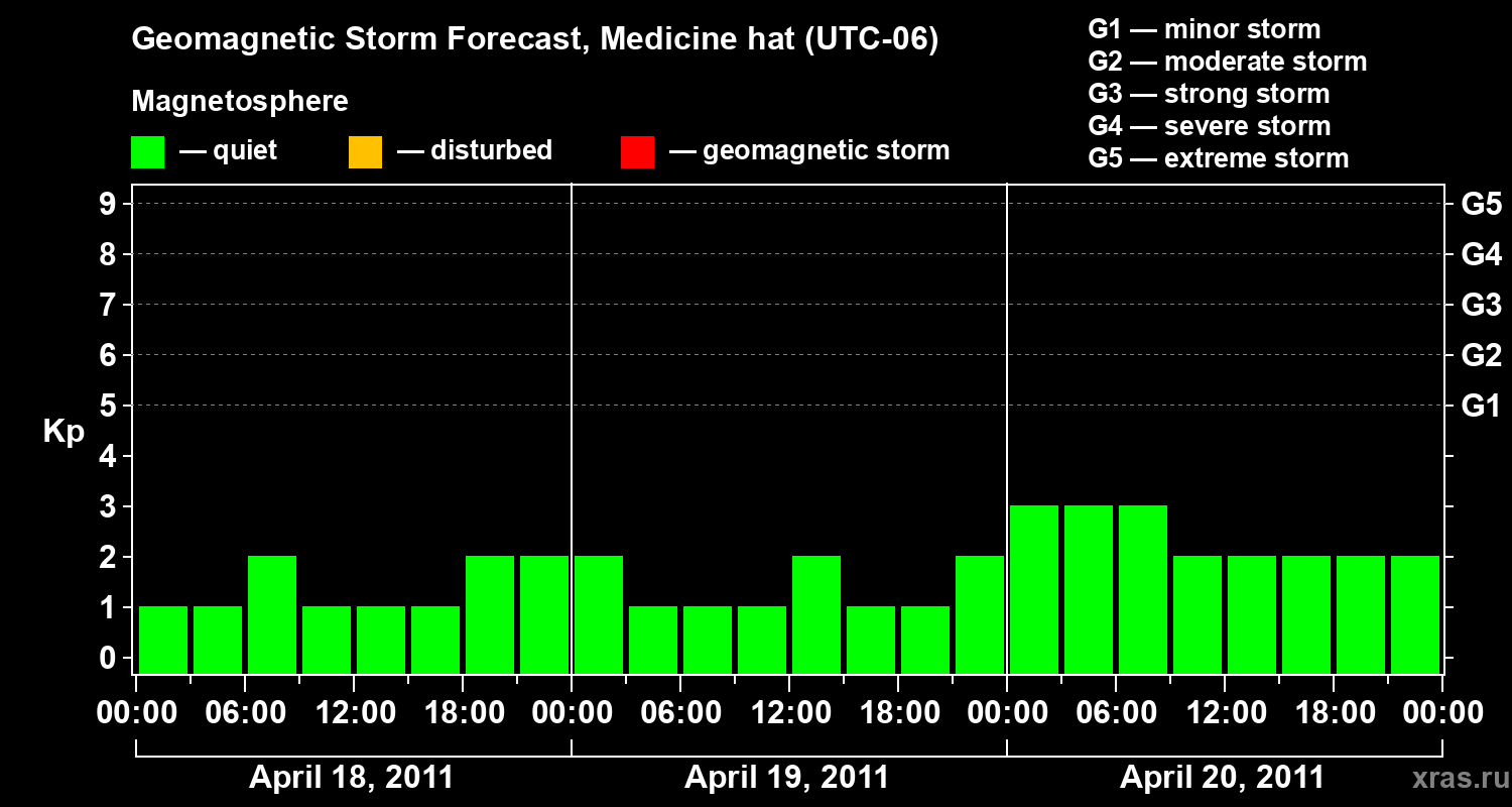 Geomagnetic storm forecast in Medicine hat for Apr 18, 2011