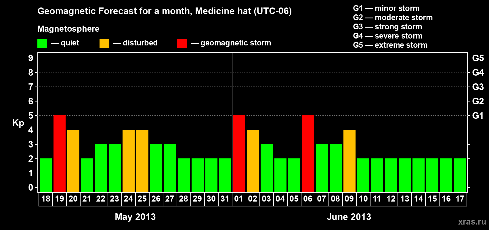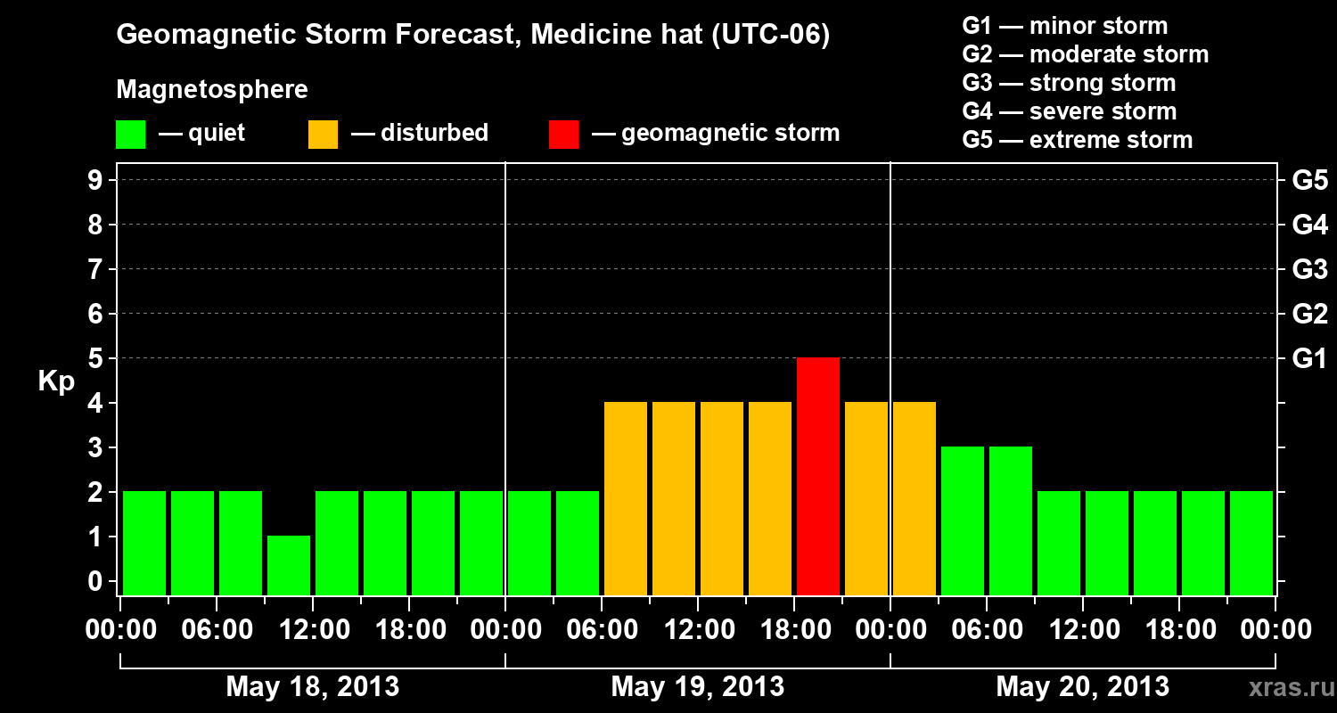 Geomagnetic storm forecast in Medicine hat for May 18, 2013