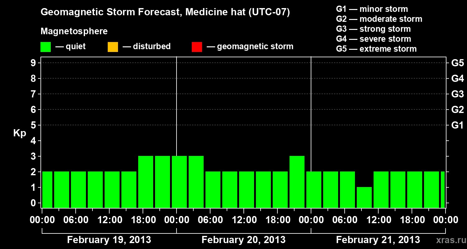 Geomagnetic storm forecast in Medicine hat for Feb 19, 2013