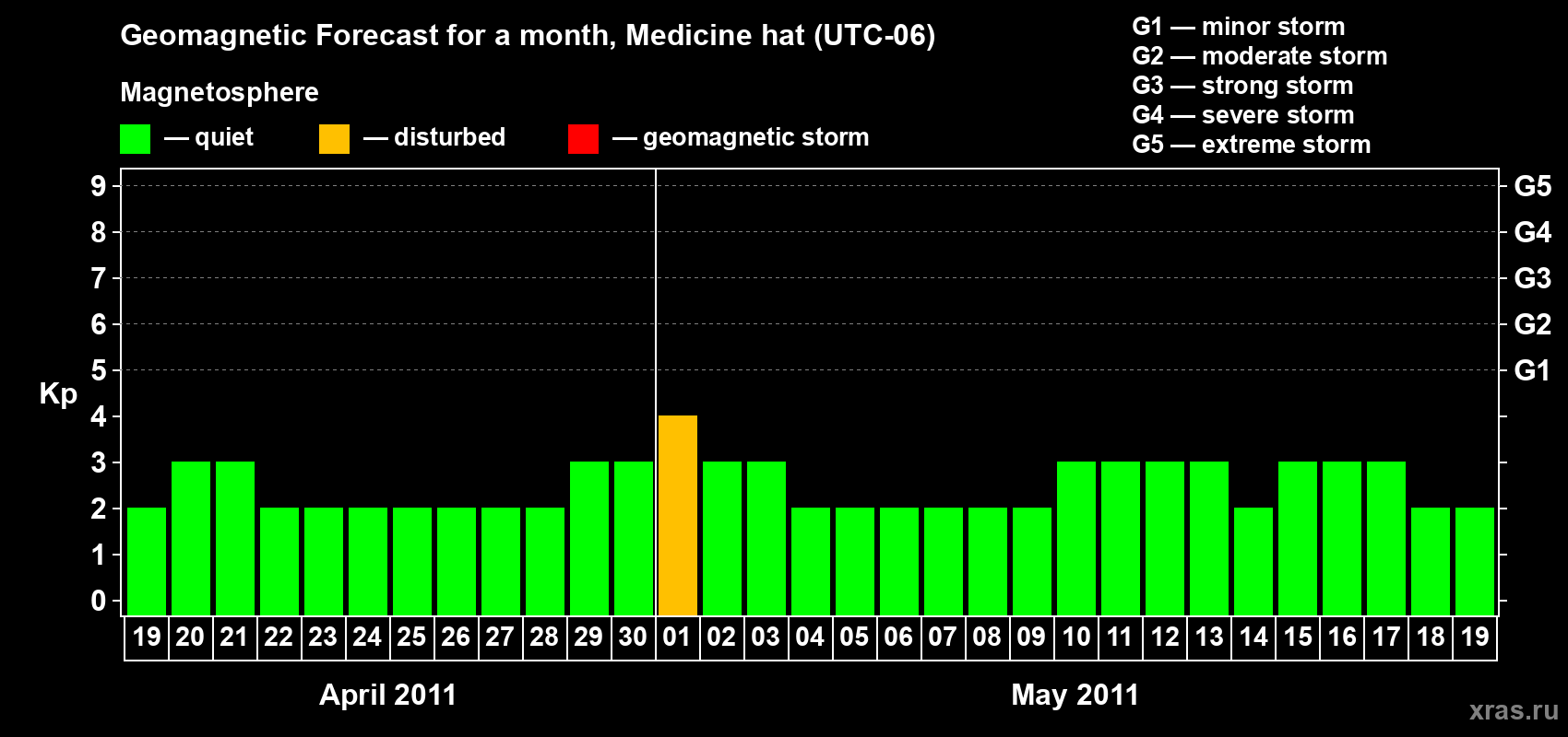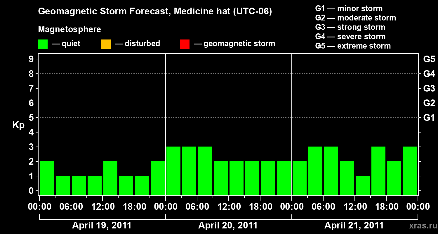 Geomagnetic storm forecast in Medicine hat for Apr 19, 2011